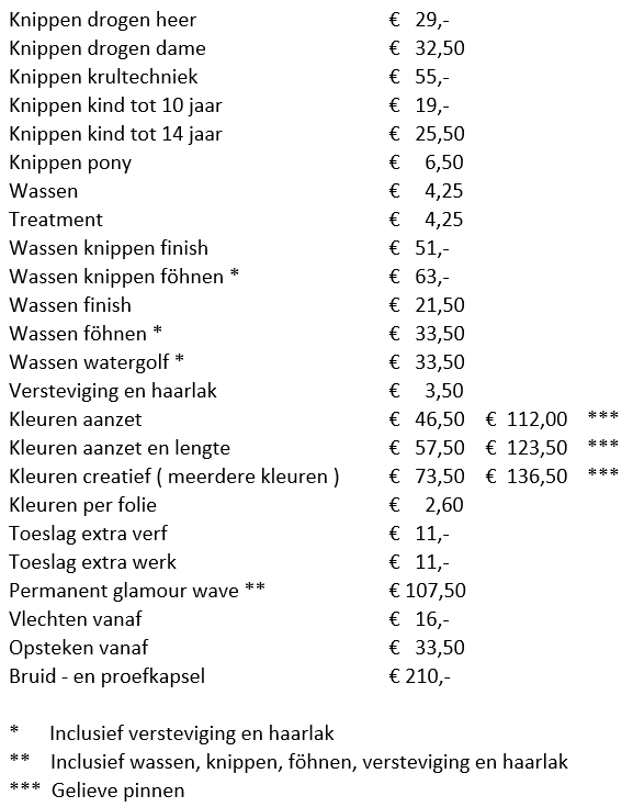 Prijslijst